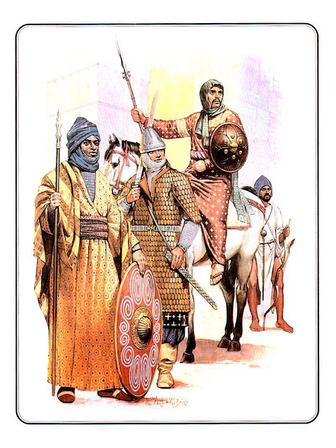 Ядром арабской армии в это время была конница, пехота носила вспомогательный характер и не играла особой роли. Арабские всадники уже знали стремена, поэтому могли использовать ударные возможности своего оружия. В бою они стремились прорвать строй врага, разбить бой на мелкие стычки и затоптать пехоту, а кавалерию изрубить.